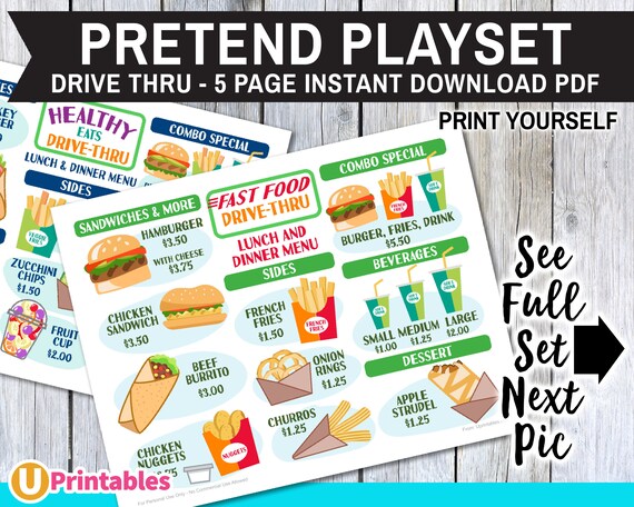 Drive Thru Restaurant Pretend Playset Printable Instant Etsy Denmark